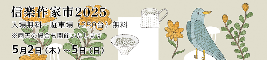 信楽作家市はおかげさまで20回目の開催を迎えます。 イベント期間はゴールデンウィークの好機に恵まれ、日本全国から連日10000人を超えるお客様にお越しいただく全国屈指のイベントとなりました。これまで大きな事故なく開催してこれたのもお客様、地域の皆さま、出展者の皆さまの寛大なお心とマナーのおかげでございます。心より感謝申し上げます。今後も無事故大成功のイベントとなるよう、より一層、甲賀市と地域、また会場となる陶芸の森と連携を密にしてまいりますので、これからも信楽作家市をどうぞよろしくお願い申し上げます。